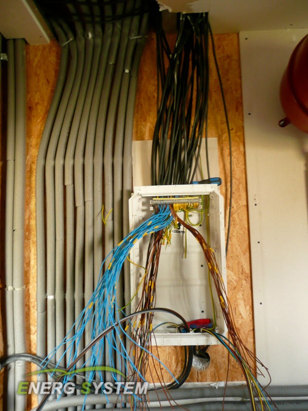 Rozvody elektroinstalace, telefonu, počítačové sítě a elektronického zabezpečení v panelech jsou vedeny v předem připravených kanálech. Po instalaci se vstupy do elektroinstalačních kanálů se vyplní montážní pěnou, aby byl celý systém neprodyšně uzavřen.